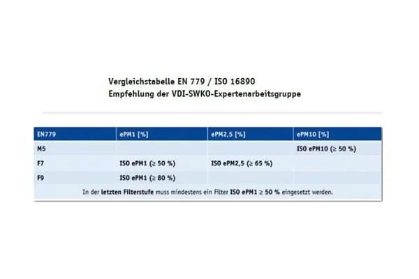 Vergleichstabelle EN 779/ISO 16890