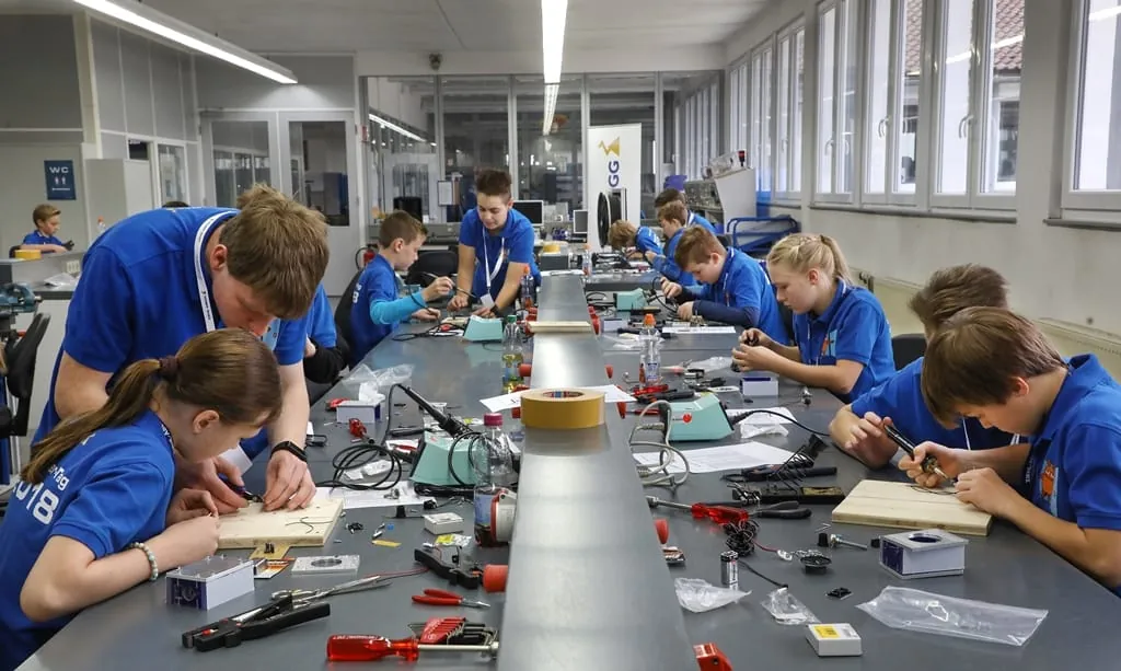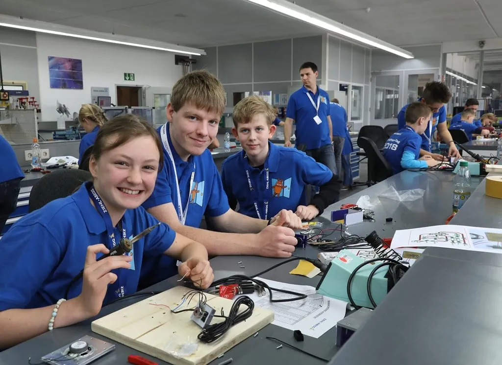Das Unternehmen setzt die Wünsche der „Sendung mit der Maus“ ideal um: „Ein reiner Tag der offenen Tür ist nicht im Sinne der ‚Maus‘ – wir bringen den Kindern die Technik näher, erklären Zusammenhänge und lassen sie selbst etwas zusammenbauen“, unterstreicht Fenkl. Die 9- bis 12-Jährigen bauten im Training-Center in Künzelsau einen Aktiv-Lautsprecher fürs Handy: von der Platine bis zum fertigen Gehäuse mit Leuchtdiode. Als Anleiter und Helfer agierten Ausbilder und Auszubildende von Ziehl-Abegg. Natürlich gab es dabei auch eine Menge Spaß – vor allem wenn die übergroßen Stars aus der „Sendung mit der Maus“ – Käpt’n Blaubär und Hein Blöd – auftauchten.
