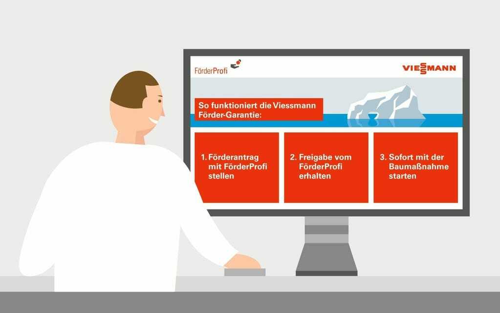 Sollte der Antrag entgegen der positiven Förderfähigkeitsprüfung und Freigabe zum Maßnahmenbeginn des FörderProfis durch den Fördermittelgeber (BAFA oder KfW) zurückgewiesen werden, garantiert Viessmann die Förderung des Vorhabens, soweit der Hauptbestandteil der Heizungsanlage ein Viessmann Wärmeerzeuger ist. Damit ist die Fördersumme sicher und es kann ohne Risiko direkt nach Einreichung des Antrags mit der Baumaßnahme begonnen werden. Das Angebot gilt für natürliche Personen als Antragsteller mit maximal zwei Wohneinheiten im Objekt. Mehr unter www.viessmann.de/foerdergarantie