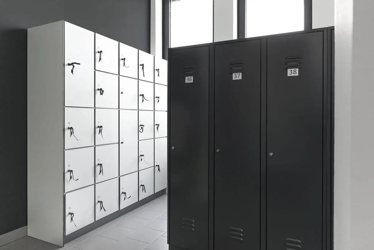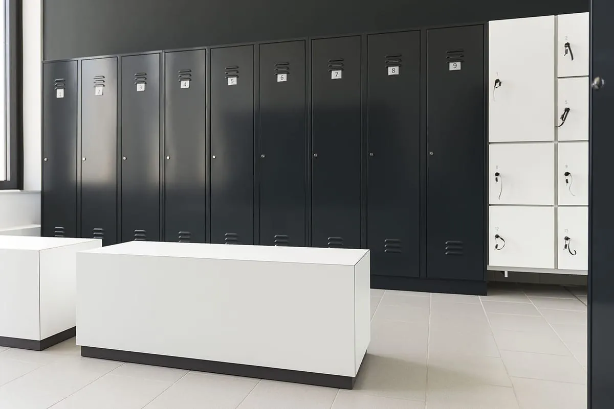 Ob Personalschränke, Wertfachschränke, Sitzbänke, Dusch- oder Wechselkabinen – das Umkleidekabinen-Programm für die Personalgarderobe von Kemmlit kann individuelle Lösungen für den Umkleidebereich bieten.