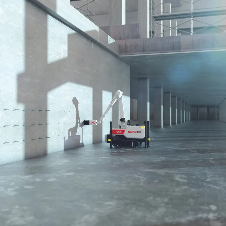 Der neue Befestigungsroboter BauBot im Einsatz. – © fischer