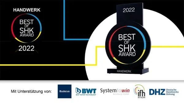 Im Jubiläumsjahr treten als Sponsoren des „Best of SHK Award für das Handwerk“ die Unternehmen Buderus (www.buderus.de), BWT (www.bwt.de) und system to win (www.systemtowin.de) auf.