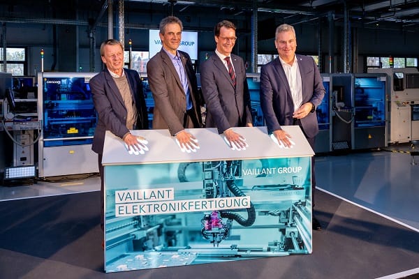 Die Vaillant Group hat an ihrem Stammsitz in Remscheid eine neue Fabrik zur Herstellung von Elektronikkomponenten in Betrieb genommen. Der offizielle Start der Produktion erfolgte durch NRW-Ministerpräsident Hendrik Wüst, den Remscheider Oberbürgermeister Burkhard Mast-Weisz und Vertreter der Geschäftsführung der Vaillant Group im Rahmen einer Einweihungsfeier am 20. November 2024.
