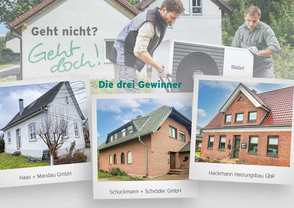Die drei SHK-Fachhandwerksbetriebe Haas + Mandau, Schuckmann + Schröder und Hackmann Heizungsbau sind die Gewinner der „Geht nicht? Geht doch!“-Challenge von Vaillant. Insgesamt haben sich knapp 70 Firmen seit September 2021 mit ihren Sanierungsprojekten beworben.