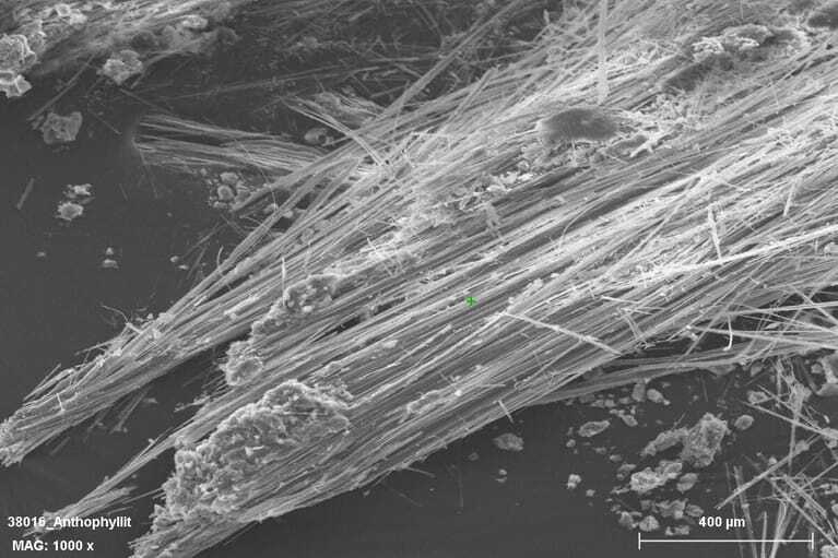 Anthophyllitfasern aus einem asbesthaltigen Steinholzestrich. – © APC GmbH, Eschborn