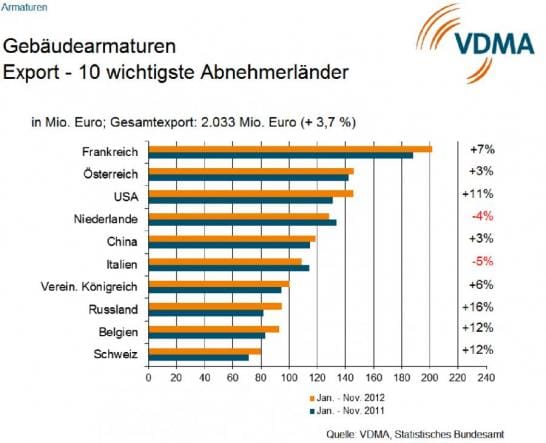 Trotz weltweiter Konjunkturschwäche erzielten die deutschen Hersteller von Gebäudearmaturen im vergangenen Jahr 2012 ein Umsatzzuwachs von fünf Prozent.