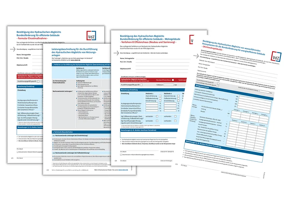 VdZ-Nachweisformulare zur Bestätigung des hydraulischen Abgleichs