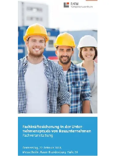 Am 22. Februar 2018 veranstaltet die RKW im Rahmen der bautec in Berlin ein Seminar zum Thema „Fachkräftesicherung in der Unternehmenspraxis von Bauunternehmen“. Teilnehmer der Veranstaltung erhalten nach vorheriger Anmeldung eine kostenlose Eintrittskarte zum Besuch der bautec.
