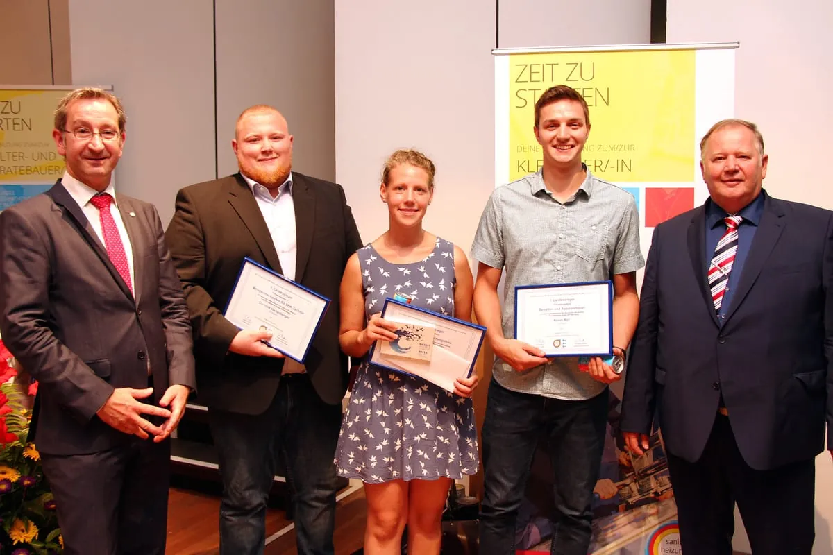 Erfolgreich und leistungsstark hat sich auch wieder einmal der Berufsnachwuchs beim Praktischen Leistungswettbewerb des Handwerks 2016 gezeigt. Der SHK-Anlagenmechaniker Dominik Hertenberger aus Ehingen, die Ofen- und Luftheizungsbauerin Katharina Ebi aus Badenweiler und der Behälter- und Apparatebauer Kevin Kirr aus Stuttgart-Fellbach wurden als Landessieger vom Fachverband bei der Öffentlichen Mitgliederversammlung geehrt. Letzterer hatte zudem noch den Sieg auf Bundesebene erzielen können. „Der Leistungswille der Lehrlinge und die Ausbildungsqualität unserer Betriebe liegen auf einem sehr hohen Niveau“, freute sich der Fachverband-Vorsitzende.
