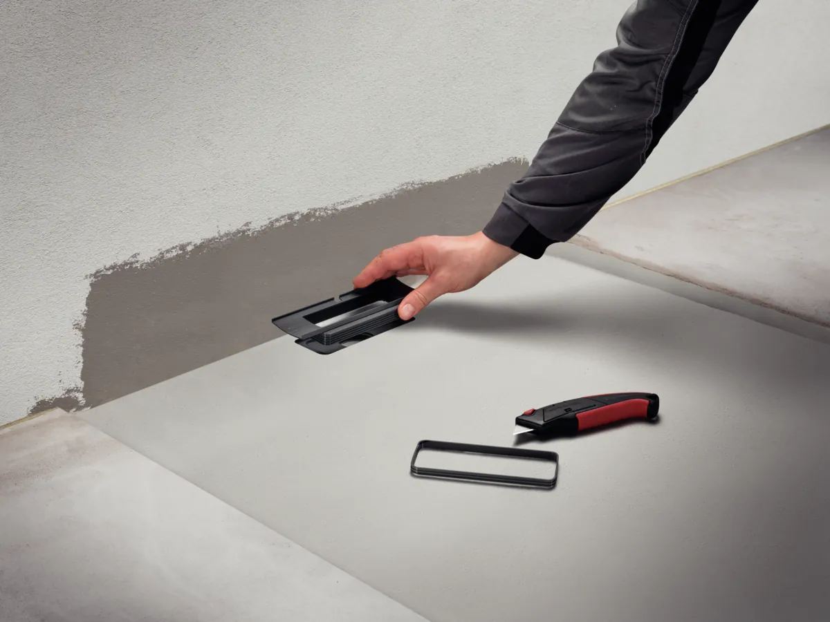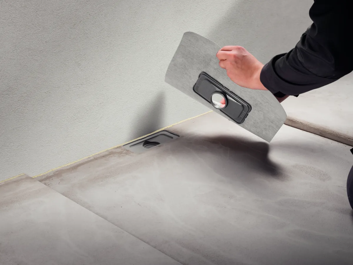 Genauso innovativ wie die Gesamtkonstruktion ist die Einbindung der neuen Viega-Duschrinne in die normgerechte Abdichtung nach DIN 18534 im Verbund mit Fliesen. Im separaten und standardmäßig beigefügten Fliesenleger-Kit ist eine Dichtmanschette mit über 120 mm Abdichtungsfläche enthalten, die nur noch von oben in den Flansch des Ablaufs eingeclipst werden muss. Auf diese Weise liegt die Manschette beim Abdichtungsvorgang knickfrei und sauber auf dem Estrich auf und kann ohne Nacharbeit direkt in die Verbundabdichtung integriert werden. Dadurch ist zugleich eine klare Trennung der Gewerke gewährleistet: Der SHK-Fachmann setzt den Ablauf, der Fliesenleger übernimmt die fachgerechte Einbringung der Abdichtung im Verbund.