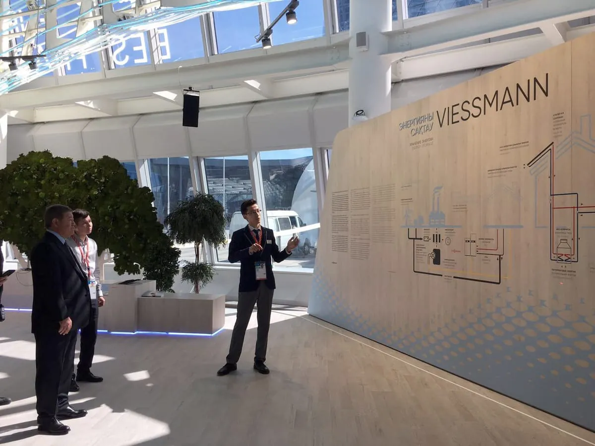 „Großes Publikumsinteresse, zahlreiche Teilnehmer aus aller Welt und mehr als 250 Fachgespräche allein in der ersten Woche – das ist die Auftaktbilanz des Viessmann Teams auf der Expo 2017 in Astana“, teilte die Viessmann-Gruppe Ende Juni mit. „Der wichtigste Aspekt ist der Austausch von Informationen“, sagt Gulmira Hnatova, Leiterin der sechsköpfigen Viessmann-Repräsentanz in Kasachstan.
