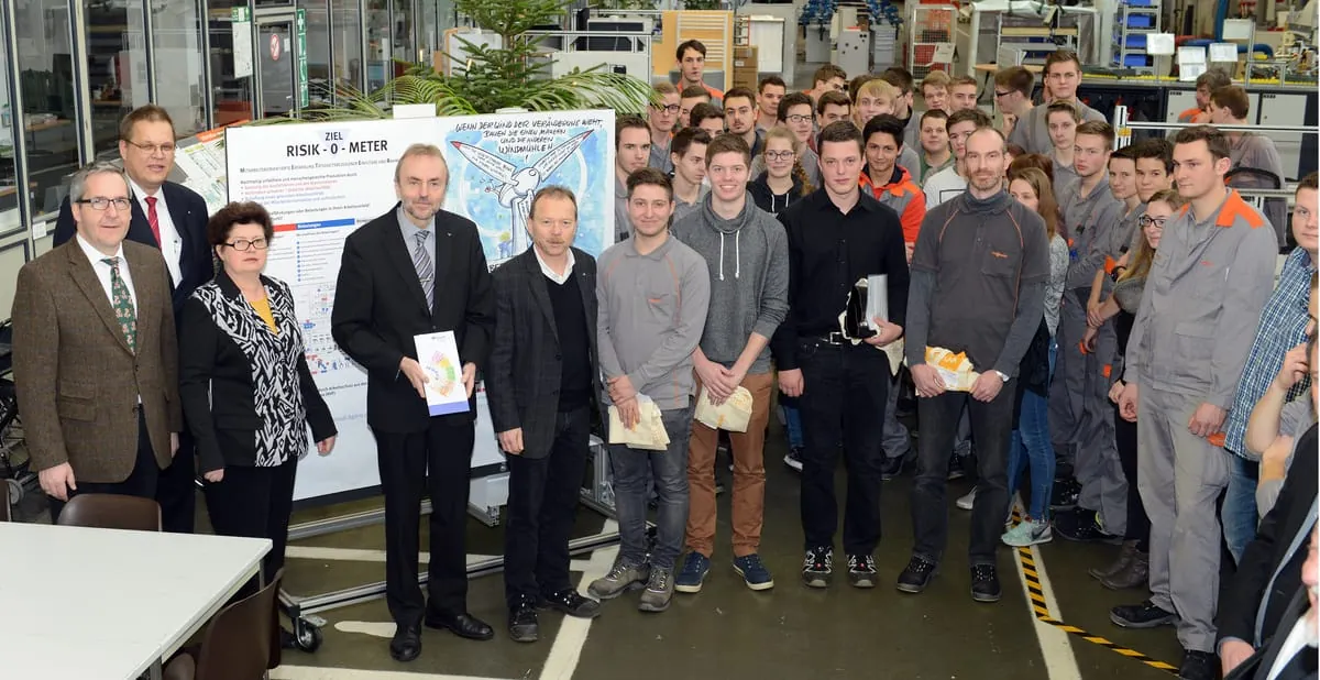 „Es ist gut zu sehen, dass es Unternehmen gibt, in denen der Gesundheits- und Arbeitsschutz von der Firmenleitung bis zum Mitarbeiter gelebt wird“, sagte Dr. Langner und ergänzte: „Erfreulich ist vor allem, dass die Auszubildenden bei Viessmann nicht nur lernen, gut zu arbeiten, sondern auch sicher.“ Ihr BGHM-Kollege Thoma würdigte insbesondere die hohe Beteiligung der Dualen Studenten beim Einreichen sicherheitsrelevanter Ideen.
