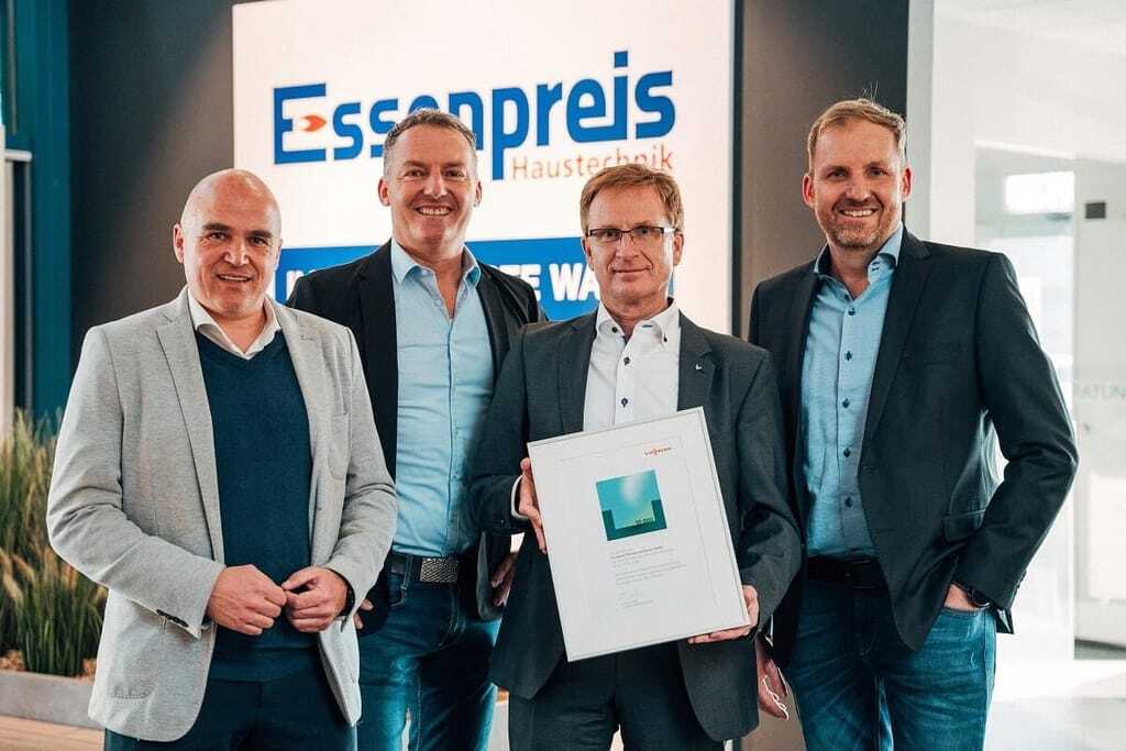 Markus Dönges unterstrich bei der Übergabe der Urkunde: „Jeder Betreiber eines Vitovalor leistet einen großen Beitrag zum Klimaschutz. Unsere Unternehmen, Essenpreis und Viessmann, gestalten Lebensräume für zukünftige Generationen“, so Dönges weiter, „und Hausbesitzer mit einem Brennstoffzellen-Heizgerät gestalten diese Lebensräume aktiv mit“. Daneben mache diese Hocheffizienz-Technologie einen Haushalt unabhängiger von der öffentlichen Stromversorgung und den steigenden Strompreisen. Für den Betreiber seien zudem die Energiekosten um bis zu 40 % geringer gegenüber der üblichen Lösung mit Strombezug aus dem Netz und einem herkömmlichen Heizkessel, beschreibt Dönges die weiteren Vorteile.