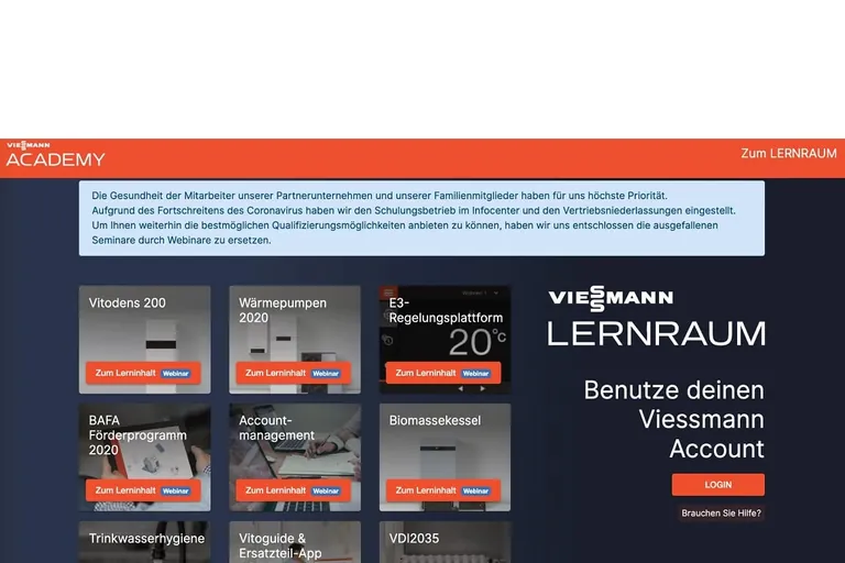 Viessmann geht mit einem stark ausgeweiteten virtuellen Programm an den Start, um die ausgefallenen Frühjahrsmessen in Frankfurt, Essen und Nürnberg auszugleichen. Ab sofort können sich in erster Linie die Viessmann Fachpartner über alle Produktneuheiten online informieren oder sich und ihre Mitarbeiter in Webinaren schulen lassen.