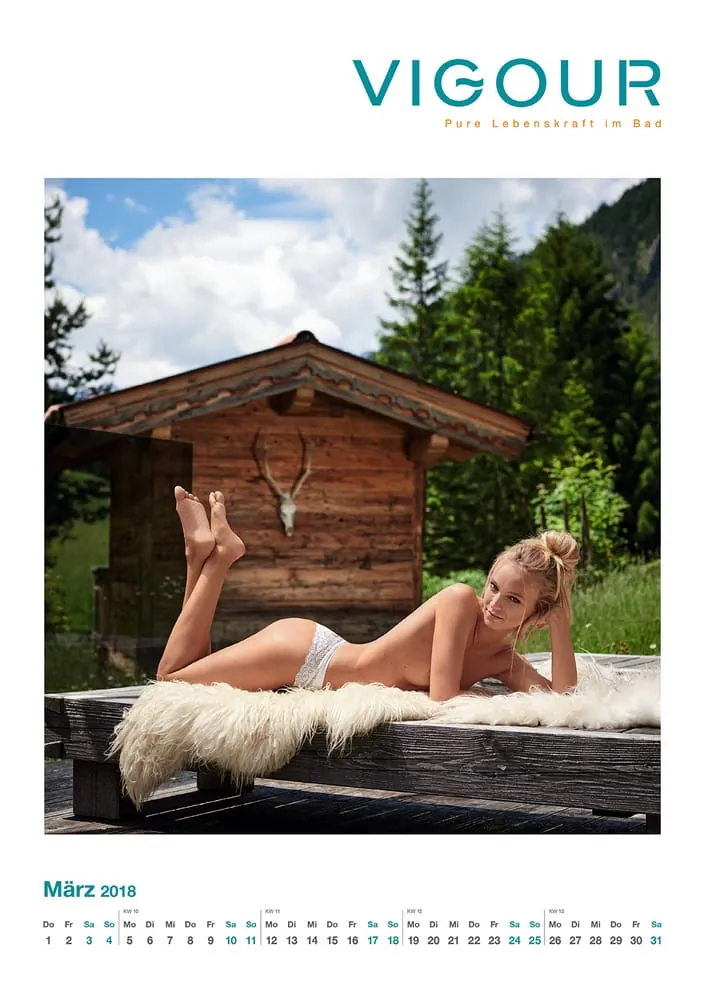 Ein satter Sound legt sich über das Postkartenpanorama der Alpen – inklusive Almhirten und schneidigem Schaf. Eines der Models „schippert“ in einer Badewanne über den Blindsee, 1.000 Meter über dem Meeresspiegel, eine Aufsatzwaschschale ist im Wasserfall platziert. Der Kalender mit Kultstatus liefert mit vielen Feinheiten Momente zum Staunen und Raunen. Das Shooting für den Jahreskalender begeisterte. Das untermauert das knapp 90 Sekunden lange Making-of-Video.