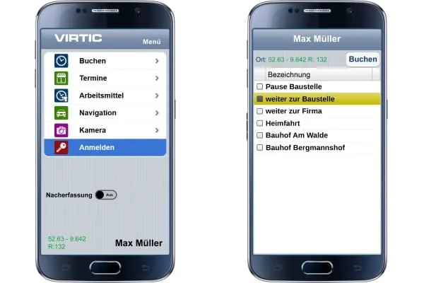 Mit der Virtic-App erfassen die Mitarbeiter komfortabel ihre Arbeitszeiten beim Kunden, auf der Baustelle, in der Werkstatt oder im Büro. Die Daten werden sofort übertragen, damit Disponenten im Unternehmen den Arbeitsstatus verfolgen können. Ein konfigurierbarer Prüf- und Freigabeprozess sorgt für korrekte Daten; dabei werden die Vorgesetzten durch integrierte Plausibilitätsprüfungen unterstützt.