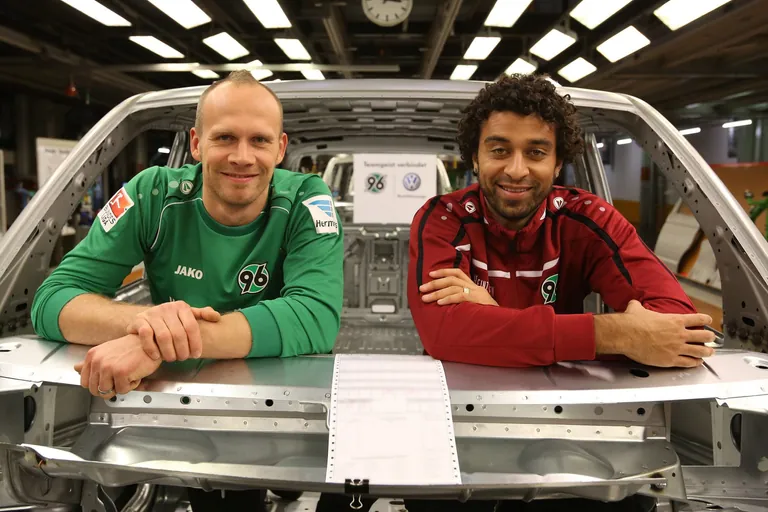 Die Hannover-96-Profis Felipe und Markus Miller besichtigten die Produktion im Werk von Volkswagen Nutzfahrzeuge. Auch das neue Reha- und Fitnesszentrum für Mitarbeiter sahen sich die Fußballspieler an. Zudem ging es auf die Rüttelstrecke, dort testeten sie den aktuellen T5 Multivan Highline, das exklusive Bundesliga-Modell „Hannover 96 Edition“.