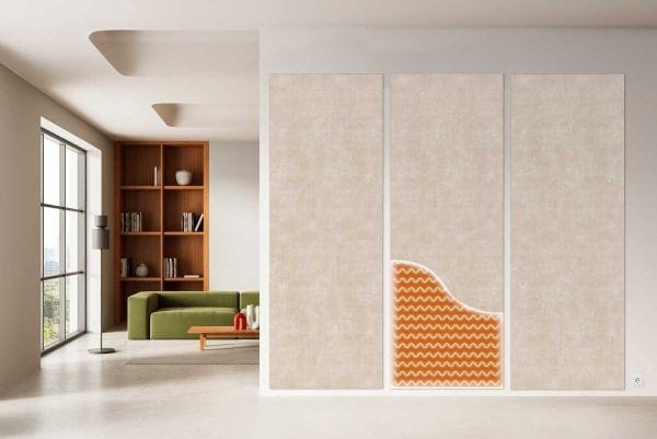 Wand im Wohnraum mit integrierten Paneelen mit elektrischer Wandheizung