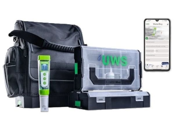 Das Messgerät WaterBoy liefert UWS im stabilen L-Boxx-Koffer, inklusive Kalibrierlösungen für die schnelle Inbetriebnahme. Die austauschbare Elektrode soll eine lange Lebensdauer sichern. Die optional erhältliche WaterBoy Bag (Umhängetasche) erleichtert mobile Einsätze im Servicealltag. Alle Messdaten kann der Handwerker in der App speichern und verwalten – besonders praktisch bei der Betreuung mehrerer Anlagen und Objekte.