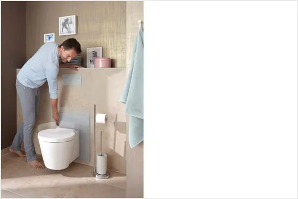 Die in Zusammenarbeit mit Artefact product design, Darmstadt, entwickelte Innovation greift eine gesellschaftliche Entwicklung auf, die das barrierefreie Bauen in den Fokus rückt. Vor dem Hintergrund des demografischen Wandels sind gerade im Badezimmer Produkte gefragt, die Flexibilität und Komfort für jedes Alter bieten. Genau hier setzt das WC-Element Eco Plus an: Per Knopfdruck kann der Nutzer individuell die Sitzhöhe des WCs einstellen. Und das stufenlos in einem Bereich von 40 bis 48 Zentimetern. Die dafür notwendige bewegliche, stromlose Technik verschwindet hinter dem Einscheibensicherheitsglas.