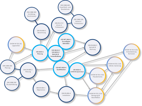 In der Auflistung der technischen Regelwerke fehlen insbesondere die Dokumente des VDI, obgleich die Festlegungen der Reihen VDI 6023, VDI 3810, VDI 2050 u.a. vielfach bewährte, allgemein anerkannte und akzeptierte Fachregeln der Hygiene und Technik in Trinkwasserinstallationen darstellen und zugleich sowohl gemäß der UBA-Empfehlung zur Gefährdungsanalyse, der DIN 1988-200 und DVGW W 551 als verbindlich einzuhaltende Regelwerke definiert werden.