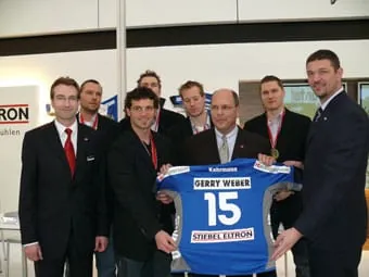 Gleich fünf Weltmeister kamen zu Stiebel Eltron auf den Stand: Carsten Lichtlein, Florian Kehrmann, Christian Schwarzer, Sebastian Preiß und Michael Hegemann. Unsere Weltklassejungs bedankten sich damit bei Stiebel Eltron, dafür, dass der Hersteller ihren Heimatverein, den TBV Lemgo, weiterhin als Sponsor unterstützt.