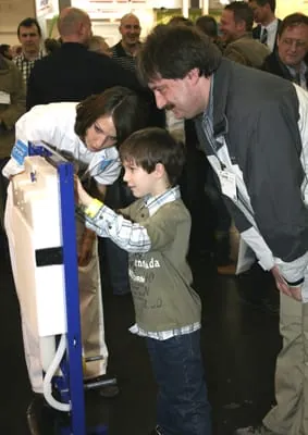In Essen konnten sich Handwerker am neuen Geberit Spülkasten versuchen. Der Schnellste brauchte nur 17 Sekunden.