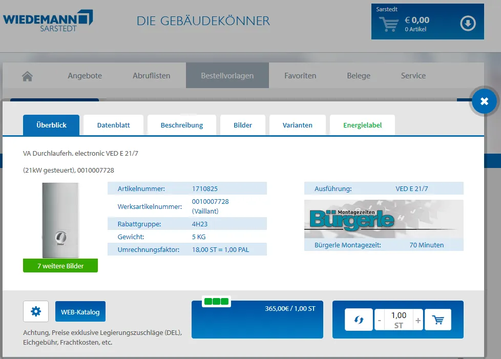 Im Onlineshop von Wiedemann finden Fachhandel und Fachhandwerker Produkte, übersichtlich aufbereitete Informationen und können technische Artikel und Exklusivmarken einfach bestellen.