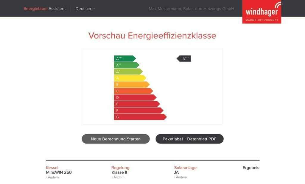 Windhager: Assistent zur einfachen Erstellung von Energie-Labels für Heizungsanlagen