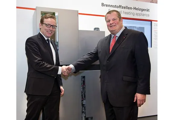 „Gemeinsam werden wir deshalb vertriebliche Synergien nutzen, um auch Kunden im Gewerbe- und Industriebereich zusammen anzusprechen“, kündigte Dr. Frank Voßloh, Geschäftsführer der Viessmann Deutschland GmbH, an. „Wir wollen aber auch Privatkunden von der Zukunftsfähigkeit des Energieträgers im Wärmemarkt überzeugen. Dafür wird es finanzielle Zuschüsse, umfangreiche Contractingangebote und zusätzliche Garantieverlängerungen geben, etwa für zukunftsweisende Brennstoffzellen zur kombinierten Wärme- und Stromerzeugung“, ergänzte Voßloh.