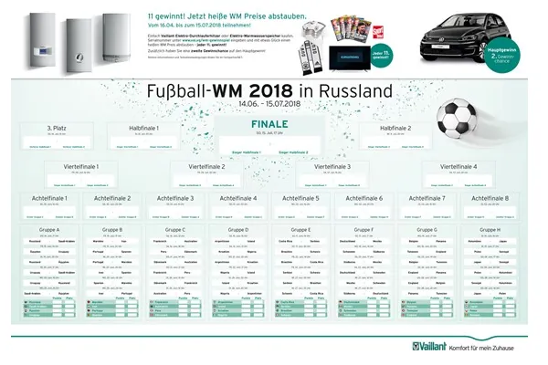 Bei der ersten Verlosung haben Teilnehmer beispielsweise die Chance auf eines von elf hochwertigen Grundig TV-Geräten, 111 DFB-Trikots und 111 DFB-Fanschals oder eines von zahlreichen Sport-Bild-Monats-Abos, teilte das Unternehmen Mitte Mai mit. Die Serialnummer der Produkte berechtigt zur Teilnahme am Gewinnspiel. Auf der Aktions-Website www.vai.vg/wm-gewinnspiel wird die Serialnummer eingegeben. Die Teilnehmer erfahren sofort, ob und welchen Gewinn sie gewonnen haben. Nach Eingabe der Kontaktdaten wird der Gewinn automatisch versendet.