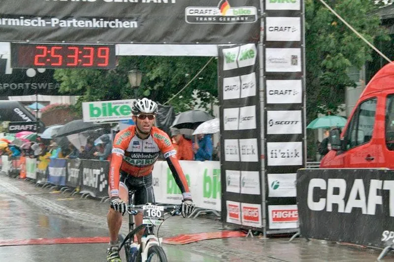 Reinisch bei der Zieleinfahrt des Mountainbike-Etappenrennens Trans Germany.