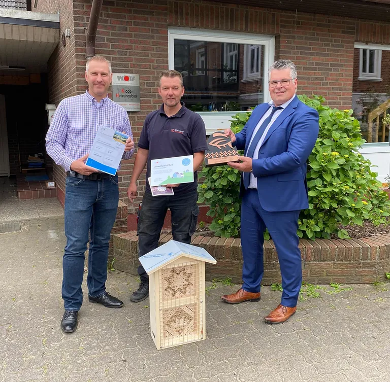 Neben der Auszeichnung selbst, die einen Holzpokal und eine Urkunde umfasst, erhielten die Gewinner ein CO2-Kompensations-Zertifikat im Wert von 1.000 Euro sowie ein hochwertiges Insektenhotel.