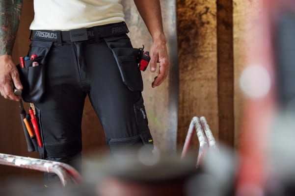 Die Arbeitshosen der Tyresta-Kollektion mit Fristads Flex System besitzen leistungsstarke Magnete. Damit lassen sich Werkzeugtaschen sicher am Bund fixieren. – © Fristads AB