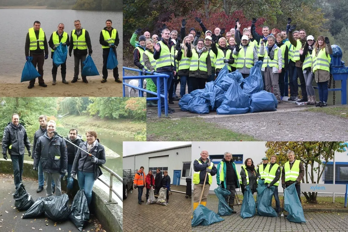 Die Xylem-Beschäftigten in Deutschland machten anlässlich des fünften Konzerngeburtstags durch eine Müllsammlung an Gewässern auf die Verschmutzung der Weltmeere aufmerksam. Zudem erarbeiteten sie so eine Spende, die in die Verbesserung der Wasserversorgung in Entwicklungsländern fließt.