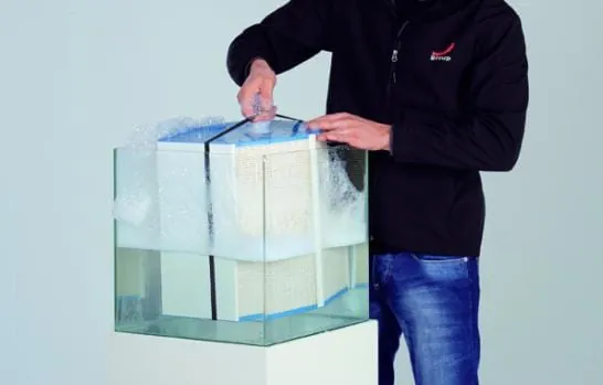 Von Zehnder gibt es einen waschbaren Enthalpietauscher für Lüftungsgeräte. Dieser kann mit klarem Wasser oder auch mildem Reinigungsmittel ausgewaschen werden.