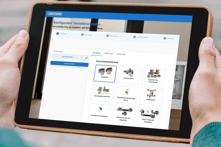 Der Systemhersteller Zewotherm bietet auf seiner Firmenwebseite einen kostenlosen Konfigurator für das Planen von vormontierten Verteilerschränken an. Mit dem Online-Planer werden Verteilerschränke individuell für jedes Bauvorhaben zusammengestellt und termingerecht mit genauer Kennzeichnung von Geschoss und Wohneinheit in einem Karton (Palette) geliefert.