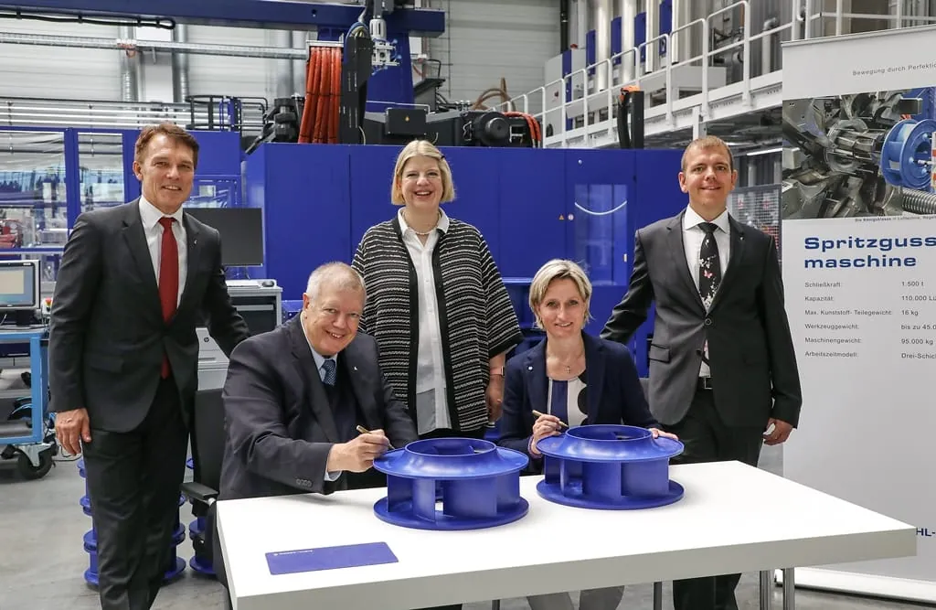 Mit einer Investitionssumme von fünf Millionen Euro für Maschinen und Werkzeuge sind bisher sechs neue Arbeitsplätze im Bereich der Kunststoffproduktion geschaffen worden. Insgesamt ist die Mitarbeiterzahl bei Ziehl-Abegg im Gewerbepark Hohenlohe von 480 auf 770 Menschen gestiegen.