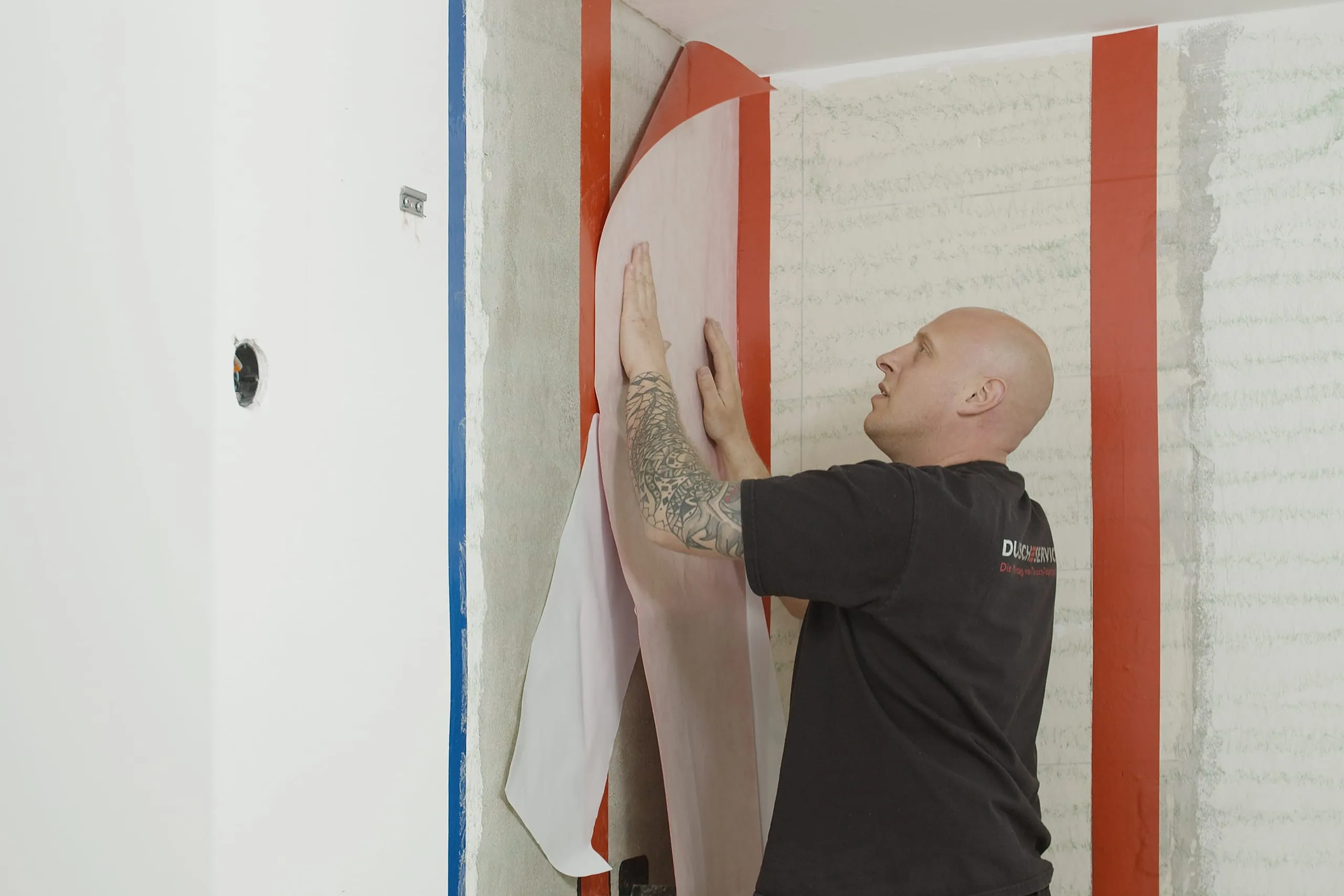 Eine zuverlässige Abdichtung vor Feuchtigkeit bildet die Grundlage für jede Wandverkleidung im Nassbereich – diese bietet Schutz vor Schimmelbildung und verhindert Bauschäden. Das neue Abdichtungssystem von HSK Duschkabinenbau stellt die ideale Basis für die Badgestaltung mit RenoDeco-Dekorplatten dar: Das praktische Komplettsystem mit selbstklebenden Komponenten dichtet schnell, einfach und DIN-gerecht ab und eignet sich dank des speziellen Primers für sämtliche nicht-sandende Untergründe. Aufgrund der eigens für HSK entworfenen, selbstklebenden Dichtbahn mit gesättigtem Vlies kann die RenoDeco-Dekorplatte zuverlässig mit einem Montagekleber auf der abgedichteten Wand angebracht werden. Wichtig hierbei: Die Plattenmontage ist ausschließlich mit dem Montage-Kit oder 1K-Klebstoff möglich, nicht aber mit Fliesenkleber oder Dichtschlämmen. Der Schaumträger in der Dichtbahn gewährleistet eine starke Haftung auf zahlreichen Untergründen, wie z.B. Altfliesenspiegeln, Putz oder Gipskarton. Die Anwendung des universellen Abdichtungssystems ist denkbar einfach und ermöglicht Installateurinnen und Installateuren ein zeitsparendes und sauberes Arbeiten, ohne auf Fremdgewerke angewiesen zu sein.