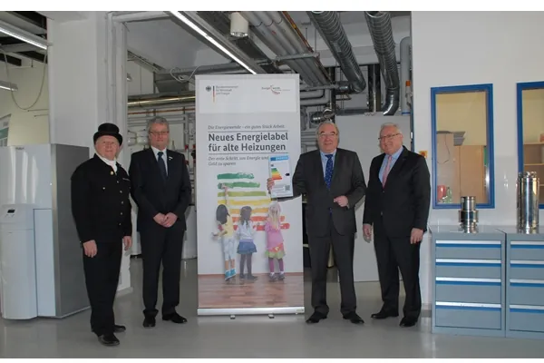 Zusammen mit dem Parlamentarischen Staatssekretär beim Bundesminister für Wirtschaft und Energie, Uwe Beckmeyer, und den beiden Präsidenten vom Bundesverband der deutschen Heizungsindustrie (BDH), Manfred Greis, und dem Bundesverband des Schornsteinfegerhandwerks (ZIV), Oswald Wilhelm, vergab Manfred Stather in einem symbolischen Akt erste Effizienzlabel.