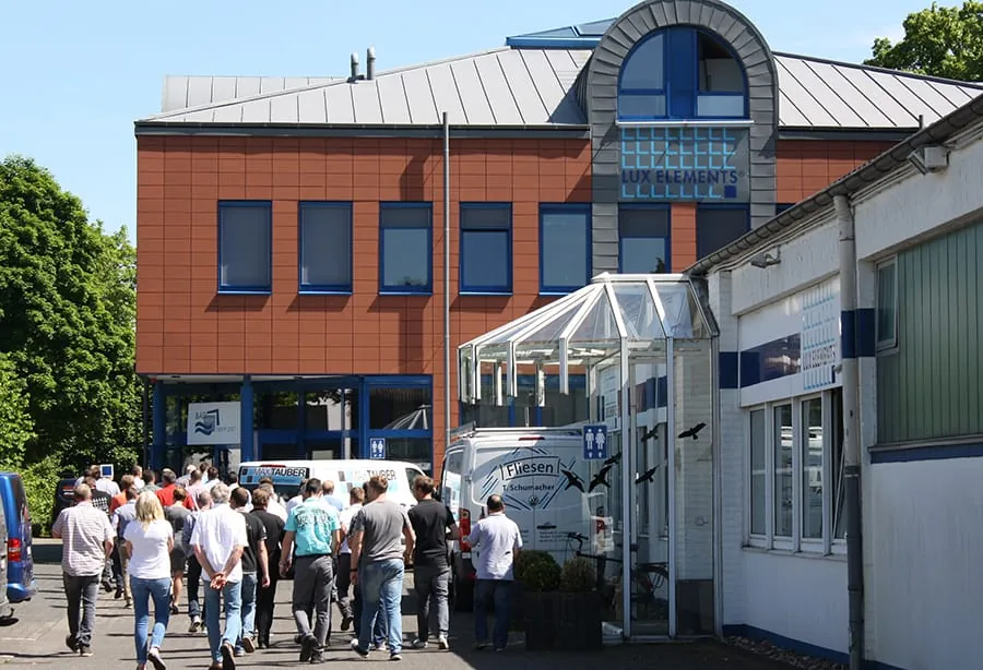 Am 17. Mai 2017 trafen sich über 50 Fliesenleger, Installateure und Bauträger zum zweiten Bad-Profi Treff bei Lux Elements in Leverkusen.